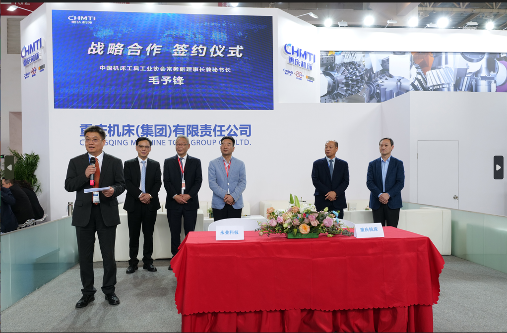 4月11日下午,IM官方网页版集团与浙江双环传动机械股份有限公司、广州数控设备有限公司、永业科技(唐山)有限公司等企业在北京·中国国际机床展览会IM官方网页版集团展位(展位号E1-A011)签订战略合作协议。中国机床工具工业协会会长毛予锋,机电股份副总经理杨泉应邀参加签约仪式。